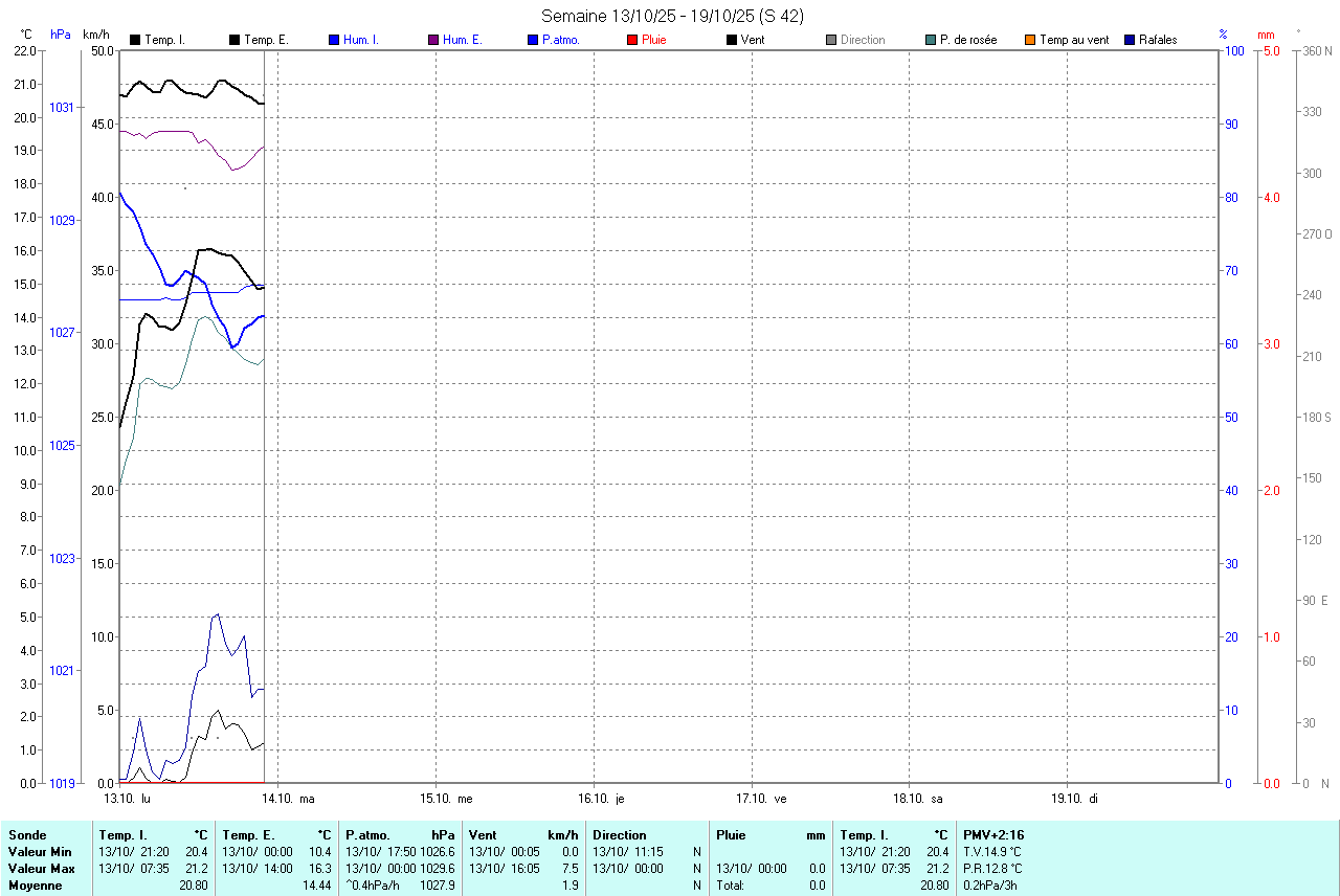 Les valeurs représentent les données de les dernières 24 Heures! La presssion est corrigée au niveau de la mer |