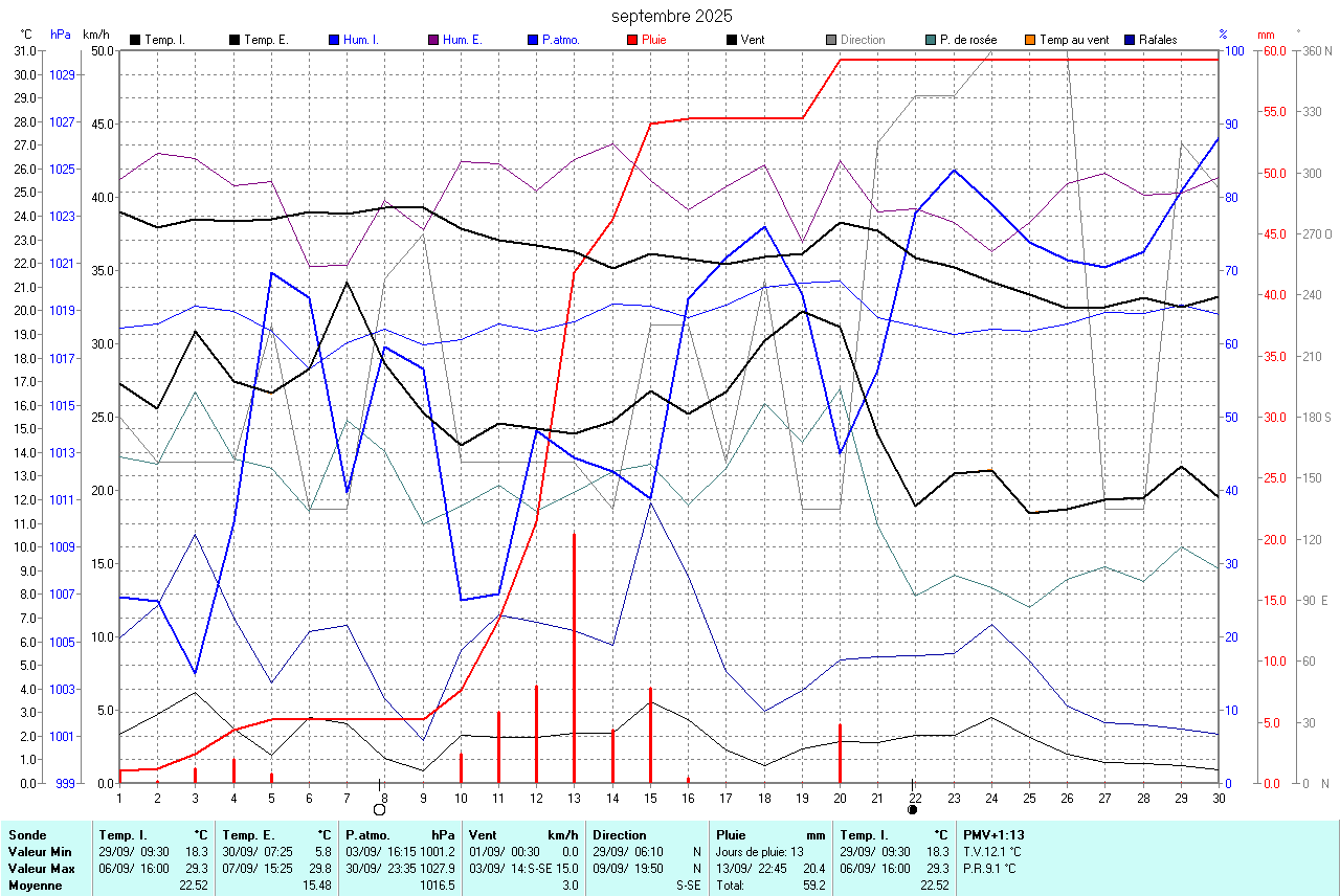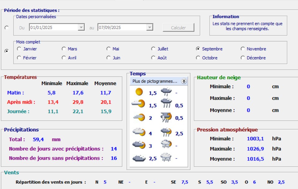 chez moi en direction de l'ouest sur un plateau ainsi que le résumé climatologique d'infoclimat de cette station