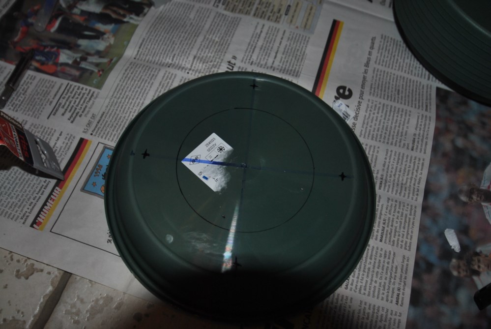 Pour 7 d'entre-eux, découper un cercle plus gros que la sonde à insérer. J'ai utilisé une boîte de conserve pour avoir le même diamètre et découpé ceci à la scie-sauteuse: