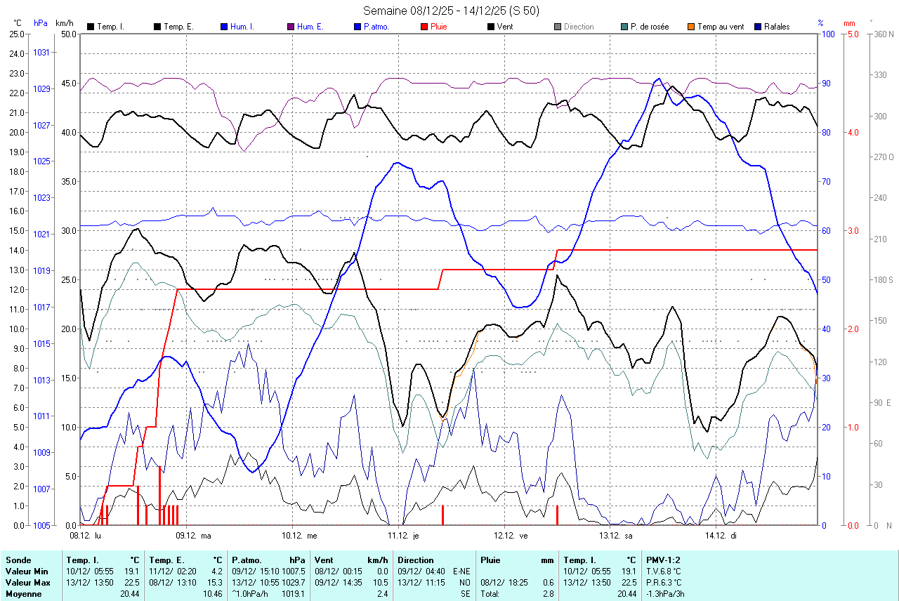 | Les valeurs représentent les données de les dernières 24 Heures! La presssion est corrigée au niveau de la mer |