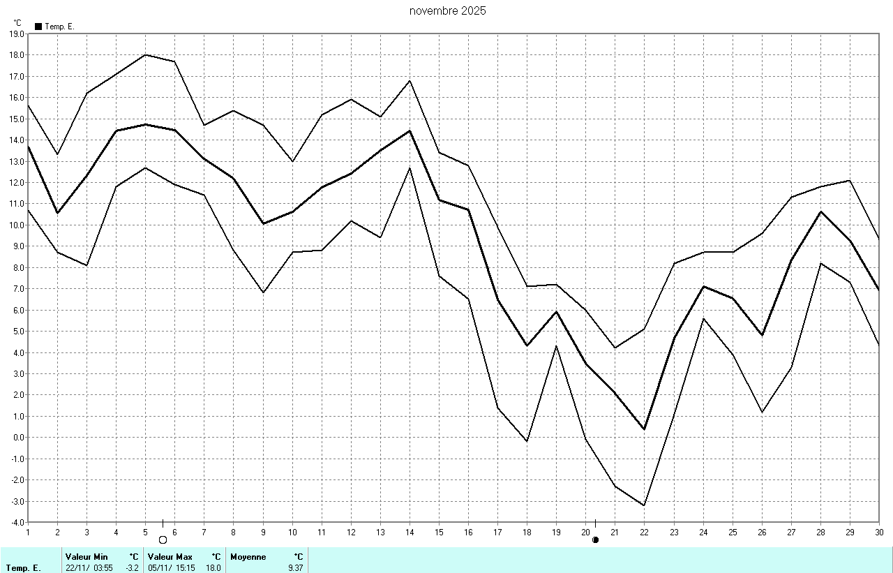 La Tm est de 9,44°C pour une normale lissée de 8,3°C (+1,1°C) et
