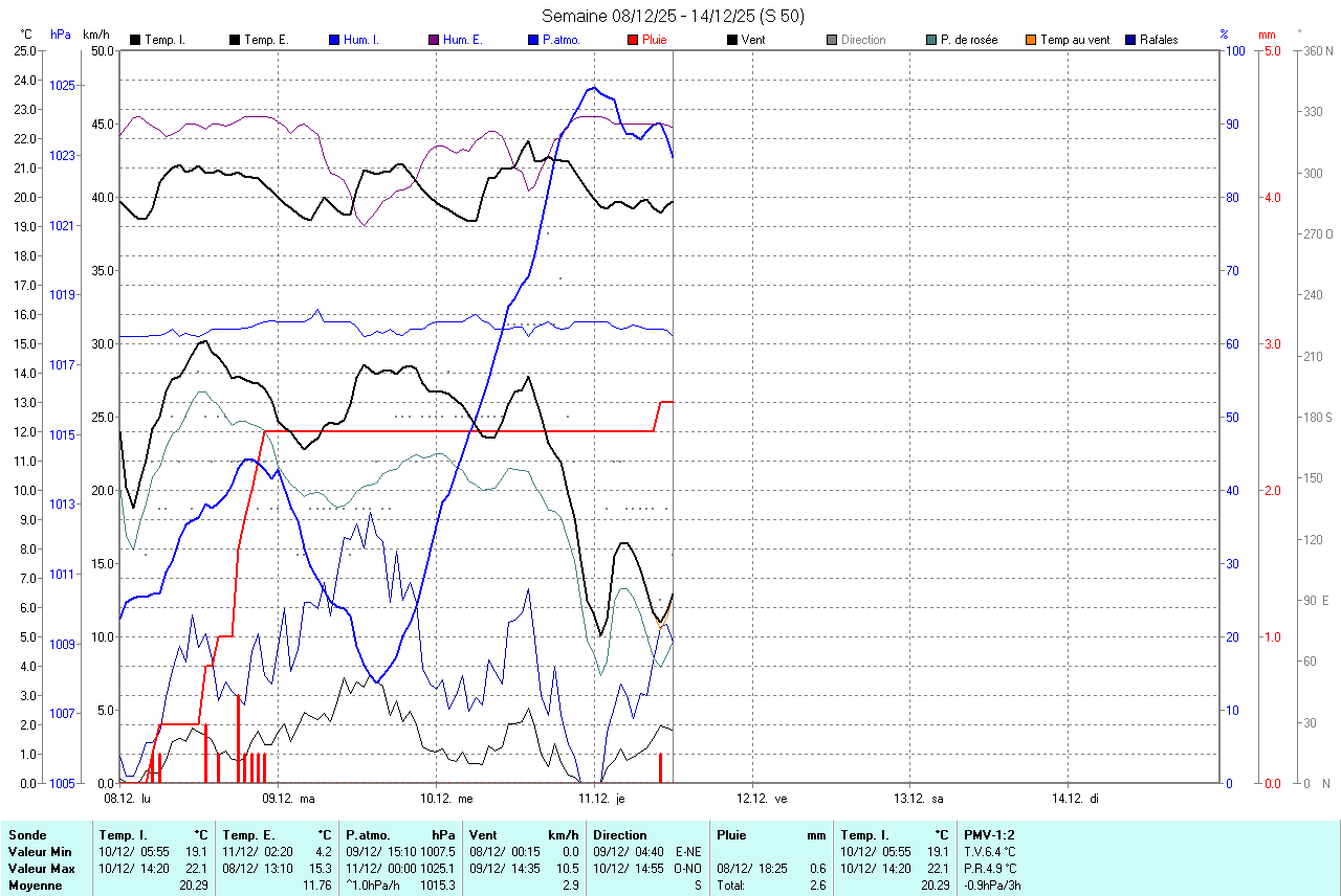 | Les valeurs représentent les données de les dernières 24 Heures! La presssion est corrigée au niveau de la mer |